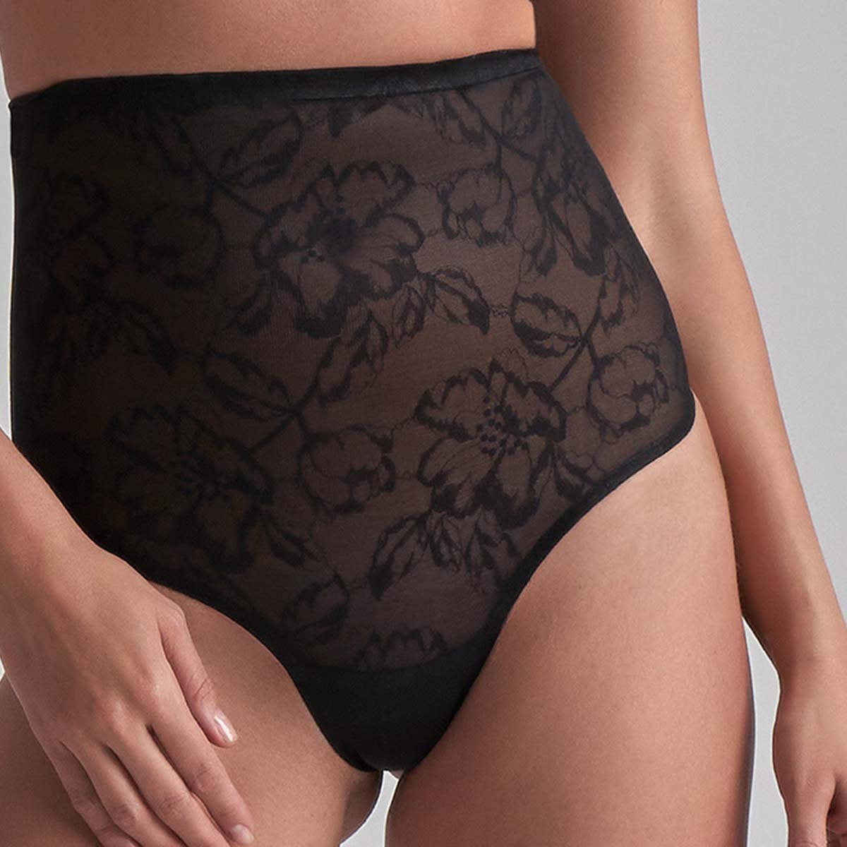 Bye Bra Lacy High Waist Shaping stringit, musta